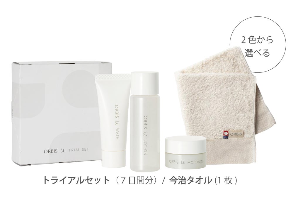 ・「オルビスユートライアル(洗顔料、化粧水、保湿液 各7日分)」と今治のふわふわ抗菌タオルの特別セット