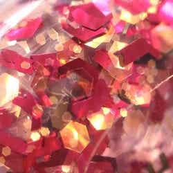 赤いネイルカラーの上に重ねると、宝石箱のようにギュッと詰まった輝きになりますよ。