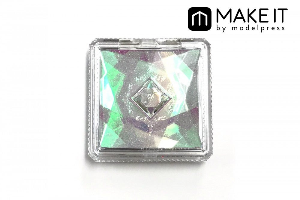 偏光ラメ入りの限定ケース (C)メイクイット2019年夏コレクションでは、動かすたびに色が変化するオーロラのように輝かしい限定デザインのコンパクトで登場!