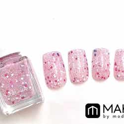 ピンクベースにホワイト・ブルー・ピンクなどに輝くラメが入っており、目に入るたびに心が弾みそう!