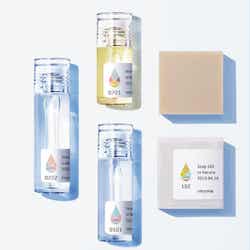 手元に届くアイテムは、防腐剤フリーの新鮮でパワフルな石鹸洗顔と美容セラム。