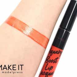 「リンメル アクアリィ ブースト リップラッカー」は美容液成分とプランプ効果を持つ成分により、ぷるんとツヤのある口元を演出するリップグロスです。