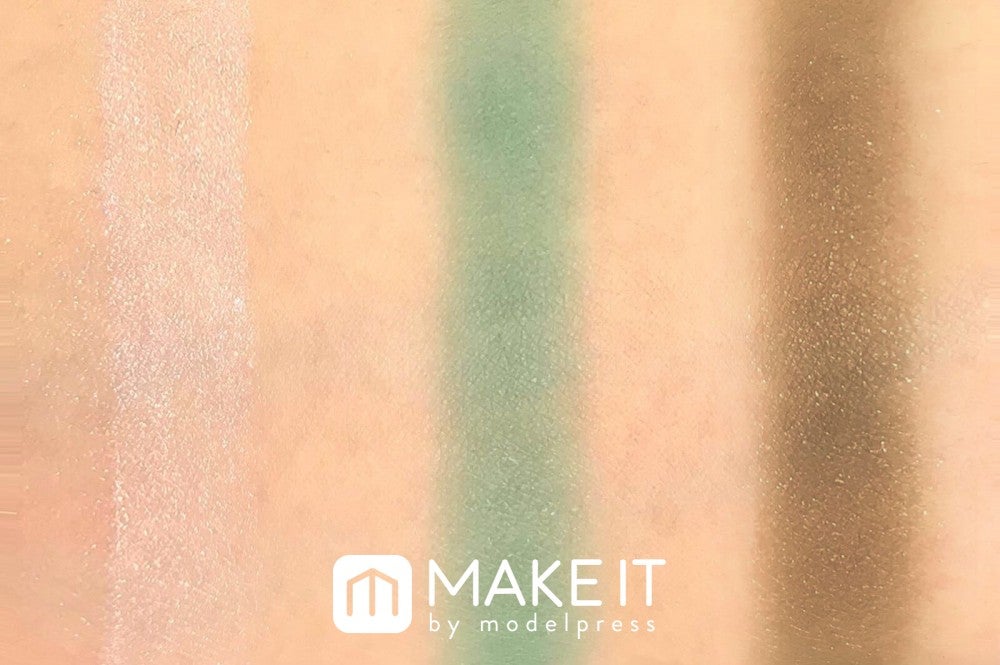 ラベンダーのクリームベース、鮮やかなグリーン、華やかに煌めくグレーがセットされた個性あふれるパレットです。