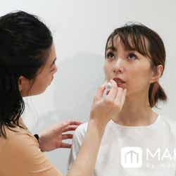 アイメイクは一旦ここで中断。全体のバランスを確認するためにリップメイクへ移行する。