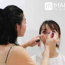 仕上げに下まつ毛のみにパープルのカラーマスカラを使用。
