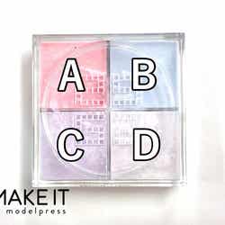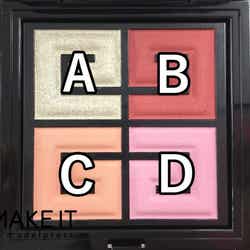 パレット右上(B)のレッドをアイライナーのように使えば、こなれ感のある今っぽい印象のアイメイクに。