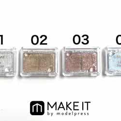 CANMAKE(キャンメイク)から現在発売中の「ジュエリーシャドウベール」は、大きさの違う2種類のラメを使い分けることができる便利アイテム!ラメだけをのせられるから、メインとしてもトッピングとしてもいろんな使い方ができちゃう優れもの。今回は、その全4色を塗り比べ、おすすめの使い方と合わせてご紹介します。