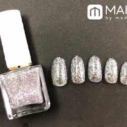 シルバーをベースに、大小異なるカラフルなラメが散りばめられており、ゴージャスさもさることながら使いやすい色味になっています。
