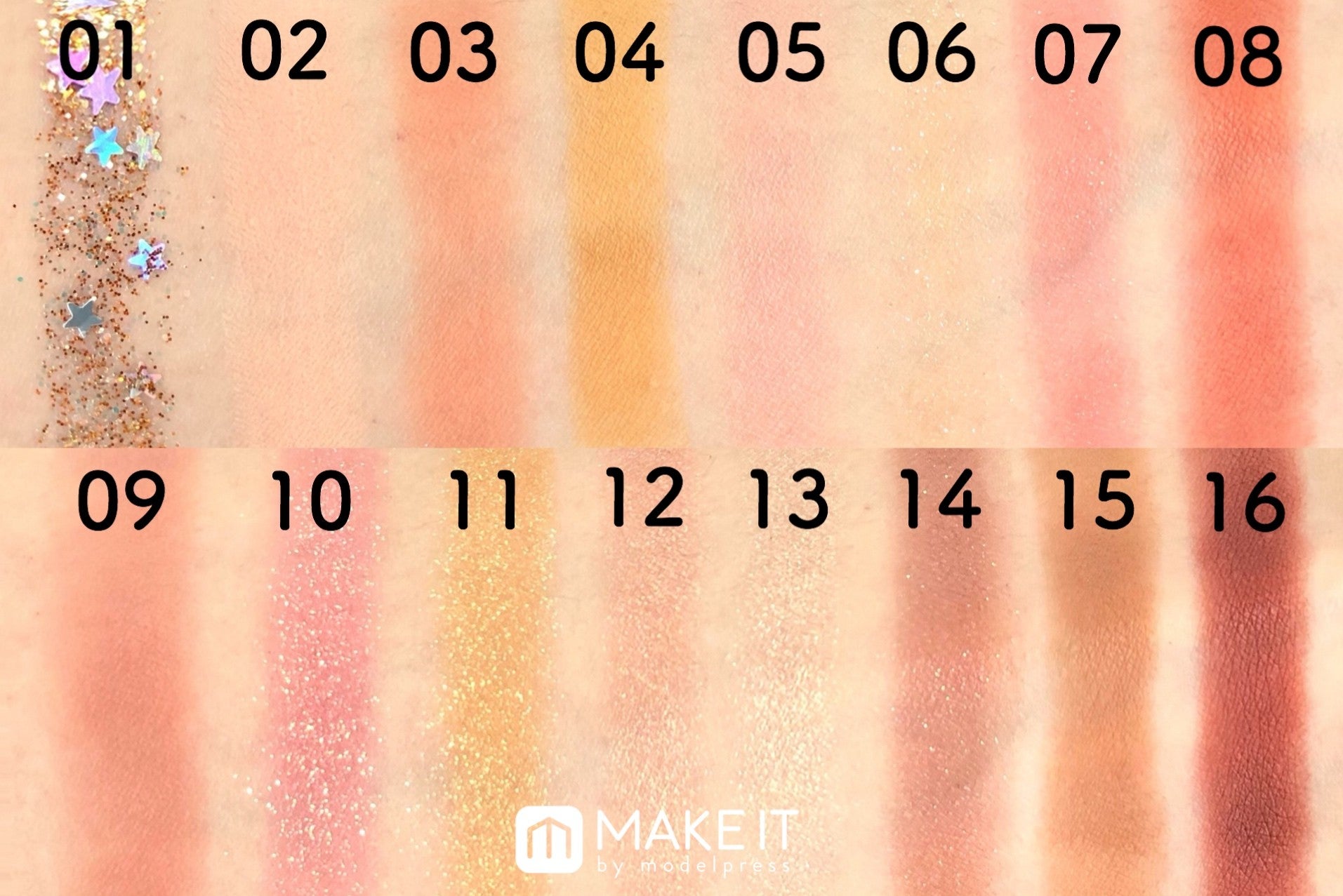 サンゴやピーチのようなカラー (C)メイクイット少し大きめサイズのラメやイベントメイクにぴったりの星入りのグリッターなど、様々な組み合わせが楽しめます!