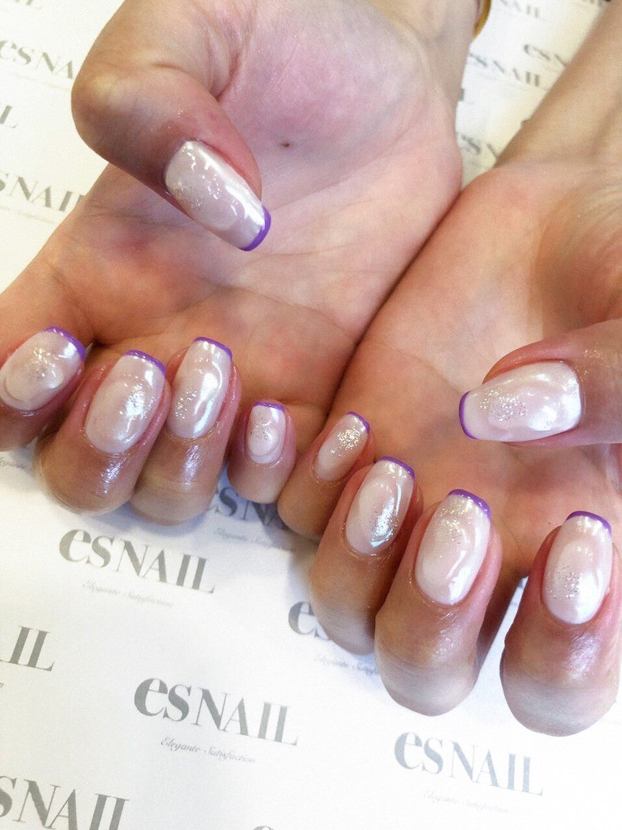 ホワイトベージュに紫をのせて艶っぽく /画像提供:esNAILベースをシアーなホワイトベージュ、フレンチ部分をくすみがかった紫に。