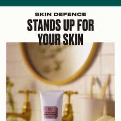 「スキンディフェンス プロテクションローション SPF50+ PA++++」(60mL 3500円※税抜/40mL 2800円※税抜 40mLサイズの店舗販売日は6月9日より順次)は、しっかり紫外線をブロックする日焼け止め乳液。ブライトニング成分のレッドアルゲとビタミンC誘導体(※製品の抗酸化剤)を配合し、しっとりとした使い心地にリニューアルしました。室内外で受けるダメージ(※室内外の塵やほこりなど)から肌を守る“マルチプロテクション効果”で、輝くようなツヤと透明感のある肌に導きます。