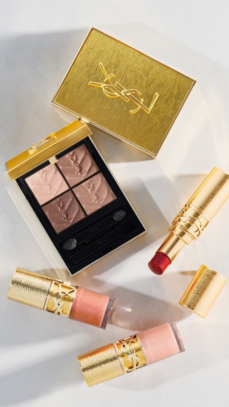 ゴールドがちりばめられたアイシャドウ、ピンクパープルのパールが輝くリップ、大粒ラメ×多色パールのグロスなど、抜け感も叶えてくれる贅沢ラインナップ!