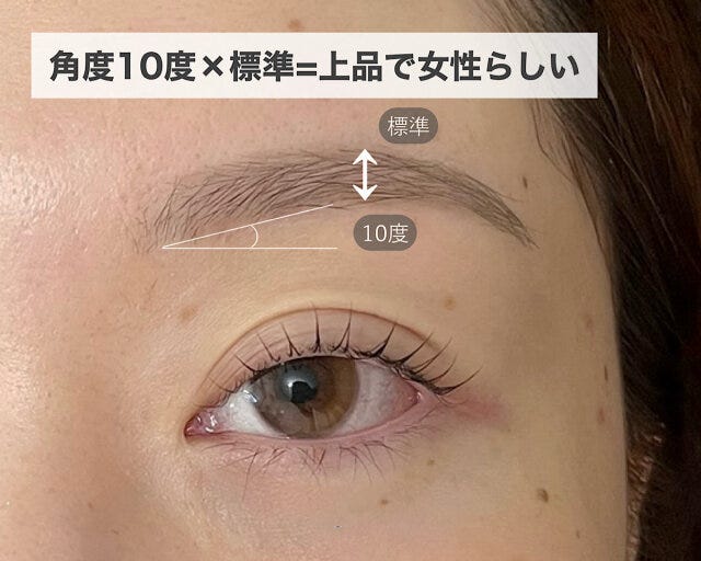 角度をつけるときつい印象になると思いがちですが、太さを取りすぎず、目安と言われる目の縦幅の2/3ほどの太さにすると女性らしくなります。