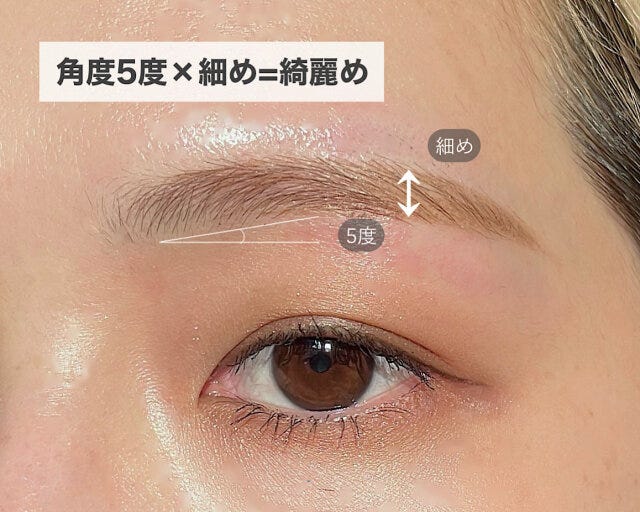 細眉は怖い印象にみられやすいですが、角度をゆるくするだけでスッキリと綺麗めな印象になります。