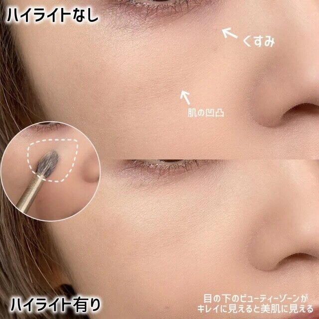 さらにマットタイプなら、毛穴を悪目立ちさせず、ふんわりとした上品な質感に。夕方の化粧直しでも、ハイライトを目の下に少し足すだけで、顔全体がいきいきと見える効果抜群です。