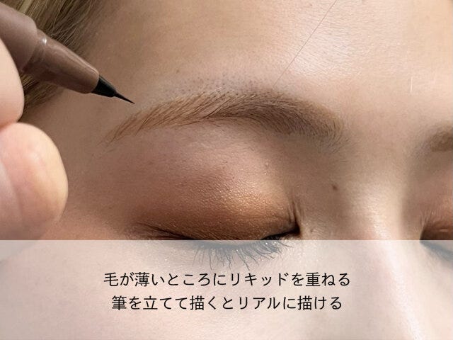 アイブロウリキッドは、ペンシルよりもより繊細な線が描け、よりリアルな自眉感が出せるのが特徴です。