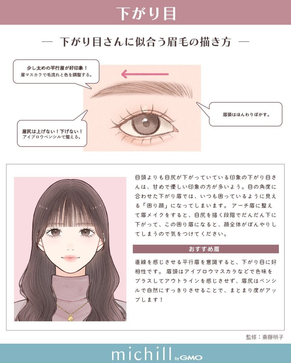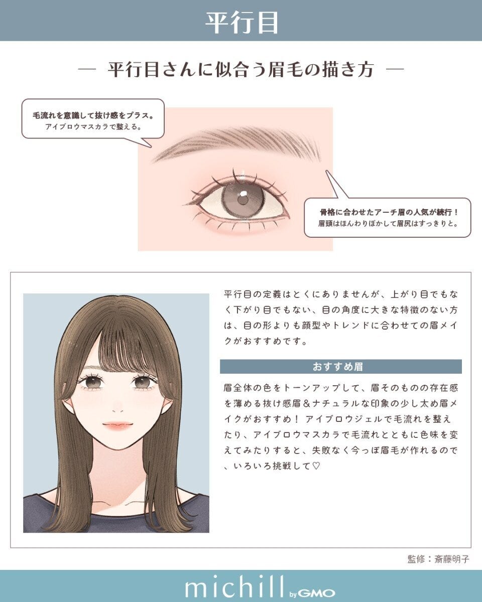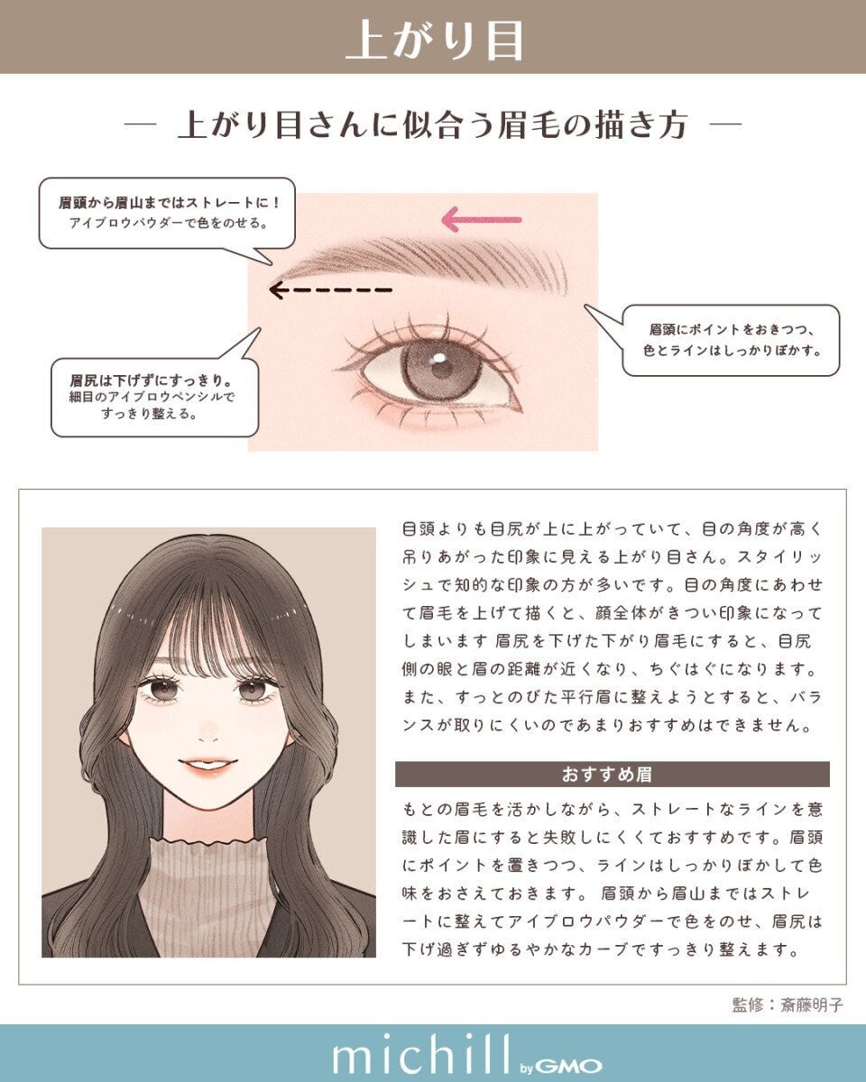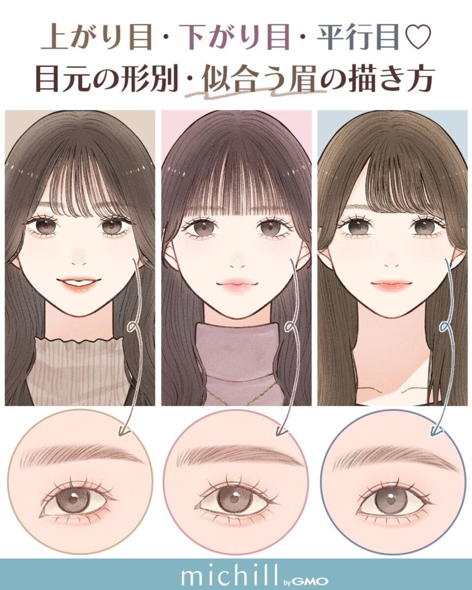 「上がり目・下がり目・平行目」それぞれの特徴に合う眉の描き方をまとめました。