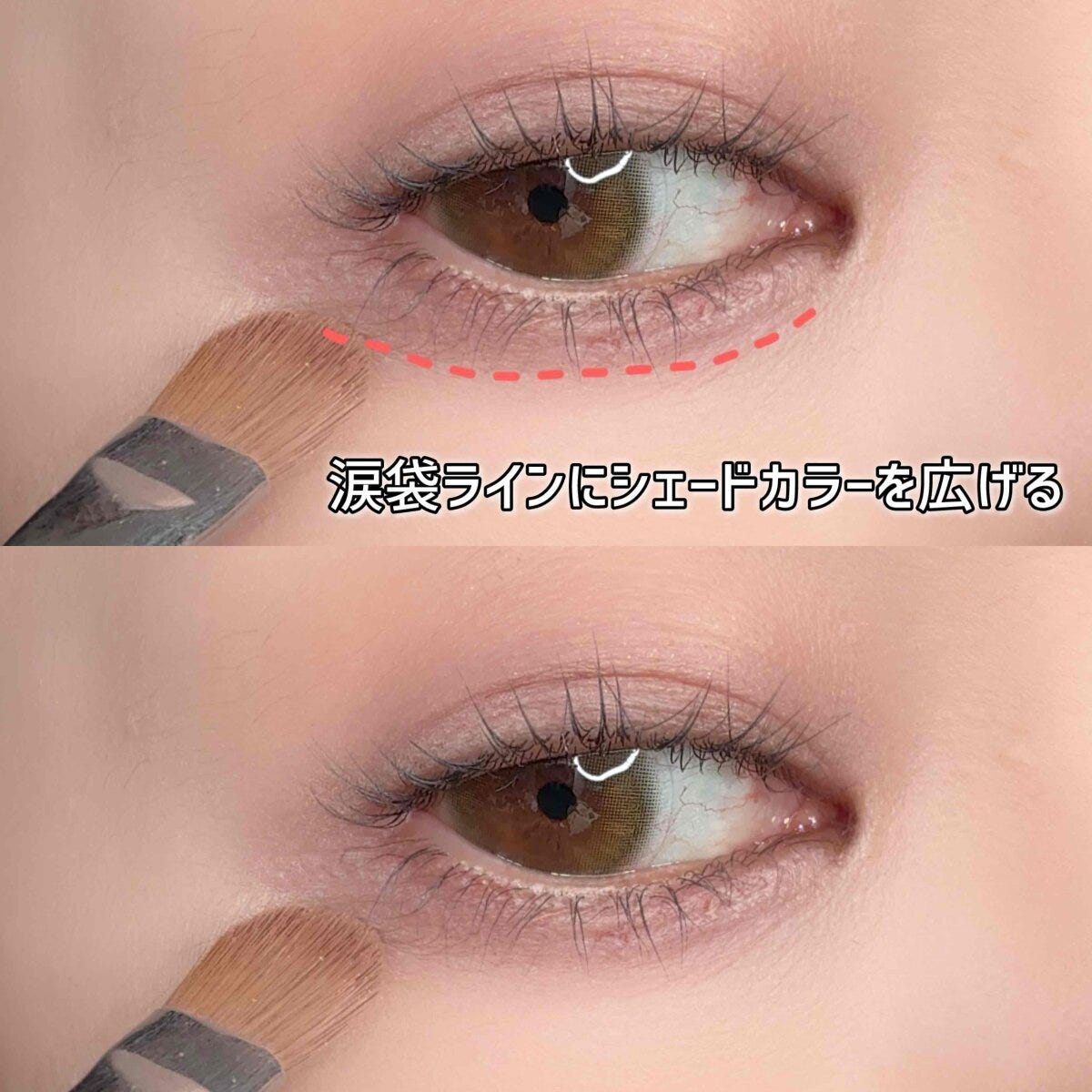 落とし穴②下まぶたも濃い色を目のキワに入れて、中間色でボカして重ねるとやり過ぎになる