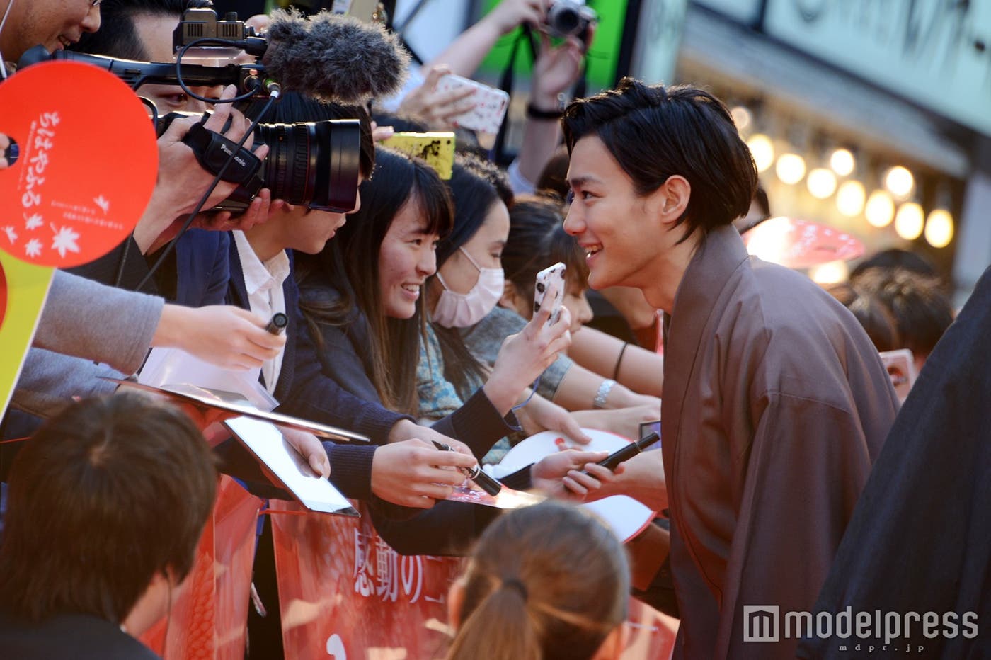 20日、東京・新宿歌舞伎町セントラルロード(TOHOシネマズ新宿前)にて映画「ちはやふる」(<上の句>公開中・<下の句>4月29日より公開)のからくれなゐレッドカーペットイベントが行われ、広瀬すず、野村周平、真剣佑、上白石萌音、矢本悠馬、森永悠希、松岡茉優、小泉徳宏監督が登壇。野村はサインにも気さくに応じるなど、沿道に詰めかけた約2500人のファンとの交流を楽しんだ。