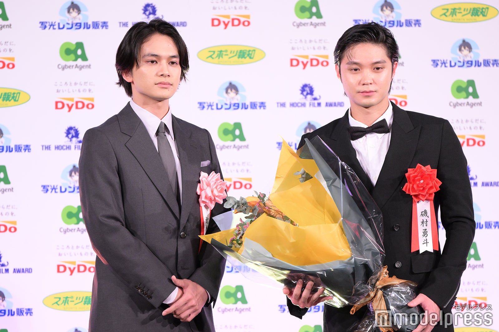 俳優の磯村勇斗が11日、都内で行われた「第48回報知映画賞」の表彰式に登壇。俳優の北村匠海がサプライズで登場する場面があった。