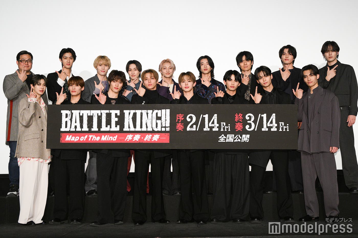 1月29日、都内にて行われた映画『BATTLE KING!! Map of The Mind -序奏・終奏-』(前編「序奏」2025年2月14日/後編「終奏」3月14日公開)完成披露上映会に、主演のONE N' ONLYら総勢17人のキャストが登壇した。