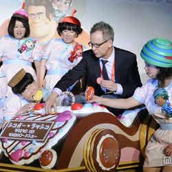 14日、ディズニーの新作アニメ映画「シュガー・ラッシュ」(3月23日公開)のリッチ・ムーア監督の来日記念イベントが都内にて行われ、本作の声優を務めたお笑い芸人の森三中やアジアンが出席した。