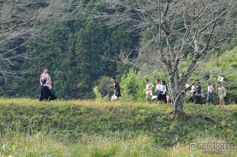 宮崎はナレーションのほか、木下監督が「二十四の瞳」の構想を得る重要なシーンで、国民学校の先生役としても登場。撮影地となった浜松市天竜区春野町・気田小学校の12人の子どもたちとともに、撮影に挑んだ宮崎。出征の見送りに行く子どもたちが国旗を振りながら軍歌を歌うなか、憂いを含んだ笑顔で見つめる宮崎の熱演が、スクリーンに美しい映像として映し出される。