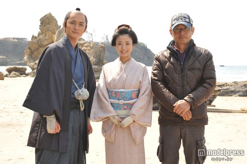 女優の上戸彩、俳優の高良健吾が1日、石川県輪島市・琴ヶ浜にて映画「武士の献立」(2013年12月全国公開)のロケを行い、報道陣の取材に応じた。