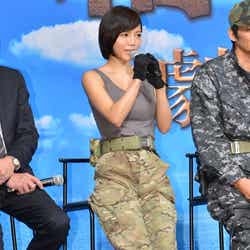 同シリーズに初出演する釈は、元陸上自衛隊の役を熱演。役の衣装であるタンクトップに迷彩柄のパンツを着こなし登場。「元自衛隊の役なので、クランクインする前に自衛隊のトレーニングを何週間もやりました」と明かし、タンクトップを着ていても充分わかる鍛え抜かれた美ボディを披露した。