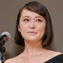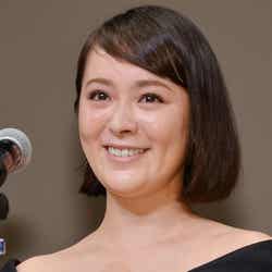 女優の貫地谷しほりが、胸元セクシードレスで登場した。