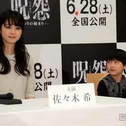 映画「呪怨」シリーズの最新作となる今作。すでにおなじみとなった白塗りの幽霊・佐伯俊雄役は今回、オーディションを勝ち抜いた8歳の子役・小林颯が務める。小林のあどけない素顔にすっかりべた惚れの佐々木は、「もうメロメロになってます」ととろけるような表情。「こんなに可愛いのに、これから180度変わると思うと本当にすごい。でも今は、想像できないぐらい可愛いなと思います」と目を輝かせた。一方の小林は、「佐々木さんを一生懸命怖がらせます!覚悟しておいて下さい」と返答。それには佐々木も「すごい怖いと思いますが、お手柔らかにお願いします」とニッコリ応えた。