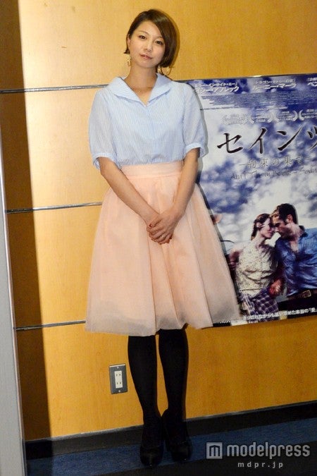 映画の感想を聞かれると、「すごく心にグッとくる、愛って何だろうなって考えさせられる映画でした」とコメント。映画の遠距離恋愛にちなんで、遠征の多い川崎フロンターレに所属する夫・稲本潤一選手との結婚生活について触れられると、「寂しいですけど、家でだらだら過ごしたり、お友達とごはんに行ったりして過ごしています」と本音を吐露した。