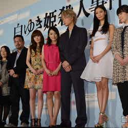 綾野は29日、都内で行われた映画「白ゆき姫殺人事件」(3月29日公開)初日舞台挨拶に、井上真央、菜々緒、貫地谷しほり、蓮佛美沙子、湊かなえ氏、中村義洋監督とともに登場。