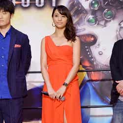 高橋演じるマリは人間の心を持ったキカイダーとは違い、完全なるアンドロイド。そのため「普段は心で動いているので、心をなくして演じるのは難しかった。それに戦闘ロボットなので正確な強さが必要で、アクションシーンには力を入れました」と役作りに苦心。それでも「CGも使っていただいて、スタッフの皆さんのおかげでとてもカッコよくなっています」と本編完成に胸を張り「アクションシーンを見てほしいのと、ジローとミツコの葛藤の中で生まれるラブストーリーも見てほしい」と満面の笑みでアピールした。