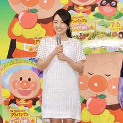 井上は20日、都内にて行われた映画シリーズ第26弾「それいけ!アンパンマン りんごぼうやとみんなのお願い」(7月5日公開)制作会見に出席。白い膝丈ワンピースから、引き締まった美脚を披露した。