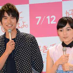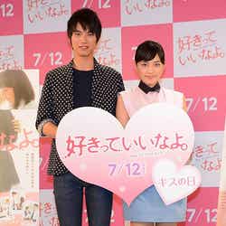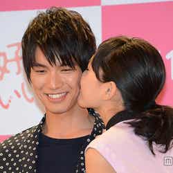 22日、都内で行われた映画「好きっていいなよ。」(7月12日公開)特別イベントでの一コマ。翌日の23日が“キスの日※”であることにちなみ、川口が福士の頬にキス。思わず赤面する2人に、会場に集まった約500人のファンからは「キャー!」と悲鳴にも近い歓声が上がった。