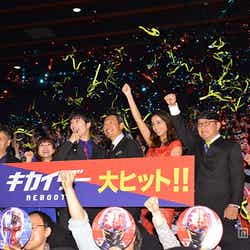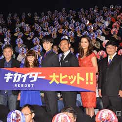 高橋は24日、都内で行われた本格的アクション初挑戦となった映画「キカイダー REBOOT」(5月24日公開)の初日舞台あいさつに、赤のワンピースを颯爽と着こなし登壇した。