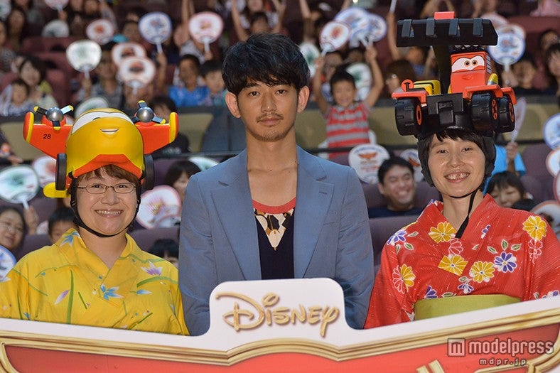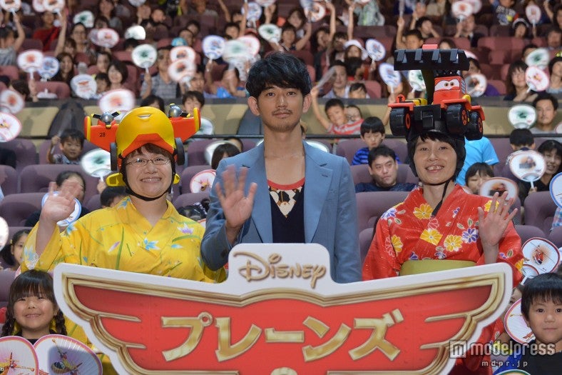 瑛太は21日、都内にて日本語吹き替え版声優を務めたアニメーション映画「プレーンズ2/ファイヤー&レスキュー」(7月19日公開)の舞台挨拶に、お笑いコンビ・ハリセンボン近藤春菜・箕輪はるかとともに登場した。