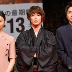 完結編となる今作は、原作ファンの間で最も人気の高い「京都編」をベースに「るろうに剣心 京都大火編」(8月1日公開)と「るろうに剣心 伝説の最期編」(9月13日公開)の2部作で連続公開。日本制圧を目論む最狂の敵・志々雄真実との戦いを、前作を上回るスケールで描く。佐藤と神木のほか同舞台挨拶には、武井咲、伊勢谷友介、青木崇高、土屋太鳳、高橋メアリージュン、江口洋介、藤原竜也、大友啓史監督が出席した。神木は「自信を持って素晴らしい作品になったと言えます」と呼びかけ、「ここに来て観ていただけることが嬉しいです。この夏は剣心でもっともっと暑くしてください」と笑顔でファンに感謝。さらに、瀬田宗次郎を演じるにあたり「宗次郎は笑顔だと思うので、劇中で誰に向けた笑顔なのか、剣心に向ける笑顔も違いますし、そういったところ観てください」とアピールした。(モデルプレス)