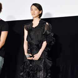 能年は6日、三代目J Soul Brothersの登坂広臣と都内の中学・高等学校にて行われた映画「ホットロード」(8月16日公開)の学生試写会にサプライズ登場。この日、能年はフリルが特徴的なブラックのドレスの着こなしを披露した。