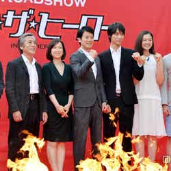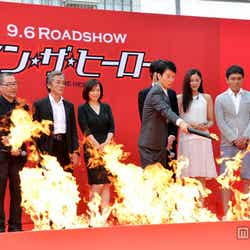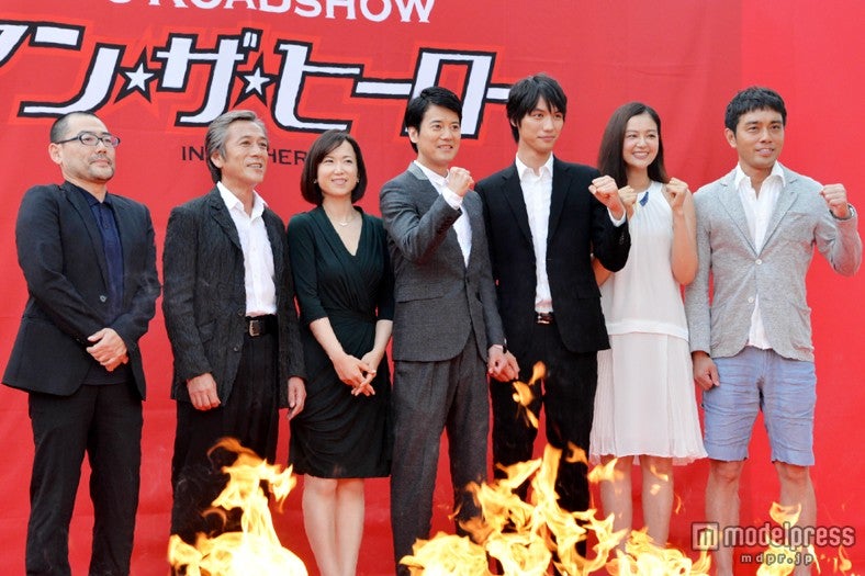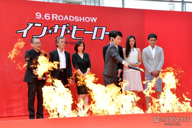 映画のために危険なヒーローアクションに挑むスーツアクターたちを描く同作。出演者たちは炎が燃え上がる中でのフォトセッションを行った後、舞台挨拶となった。