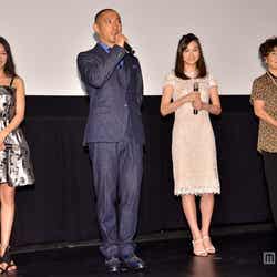 23日、都内にて映画「喰女-クイメ-」初日舞台挨拶が行われ、企画・主演の海老蔵をはじめヒロインの柴咲、中西美帆、根岸季衣ら主要キャストが登壇。はじめの挨拶で先陣を切った海老蔵は、上映後の舞台挨拶にも関わらず「お手柔らかに、最後まで眠らずに見てください」と観客に呼びかけ、上映後だと知らされると「ご覧になった後!あぁそう!どうもすいません!」とおとぼけ。開始早々から爆笑を浴びる始末となり、三池崇史監督からは「打ち合わせ全く聞いてない!」とダメ出しが入った。