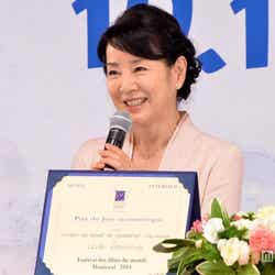 グレーのシックなドレスで登壇した竹内は、「モントリオール世界映画祭で賞をもらうことは、世界的な賞なわけですけれど、私は今まで、正直にいうと実感としてピンとくるところがありませんでした。今、目の前にトロフィーが置いてあるのを見て、改めて実感しています」と喜びを噛み締め、「本当はモントリオールに行きたかったです」と快挙の瞬間に立ち会いたかった本音を明かした。