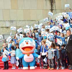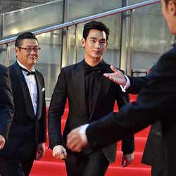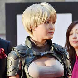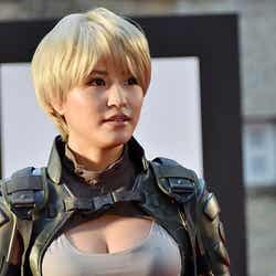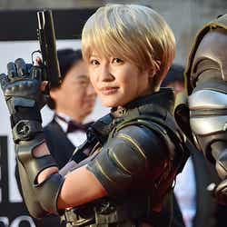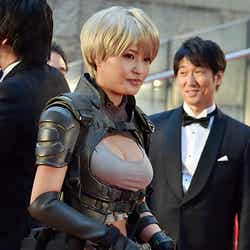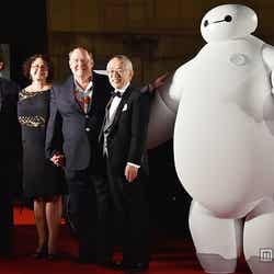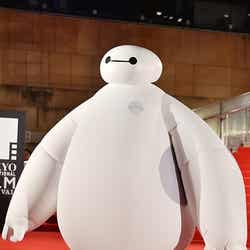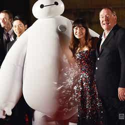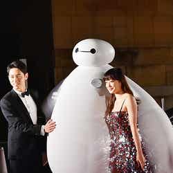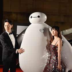 なかでも際立ったのはやはり女優陣。オープニング作品として上映されるディズニー・アニメの最新作『ベイマックス』(12月20日公開)の日本語吹き替え版で声優を務める菅野美穂は、胸元がセクシーな星柄のベアトップドレスで登場。この日、世界初お披露目となった同作のキャラクター・ベイマックスを見つけるとすぐに抱きつくなど、大喜びだった。