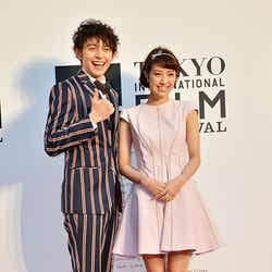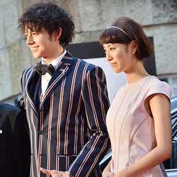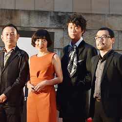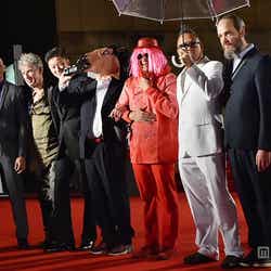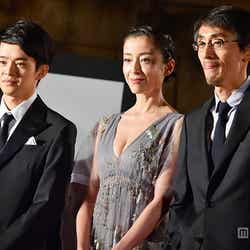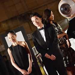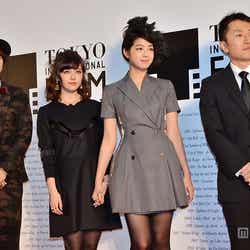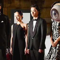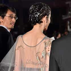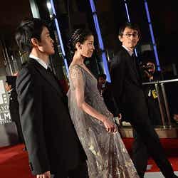 クロージング作品『寄生獣』(11月29日公開)に出演する深津絵里は黒のパンツスーツ姿、同じく橋本愛はシックな柄ワンピース姿で笑顔を振りまく。コンペティション部門に選出された『紙の月』(11月15日公開)で主演を務める宮沢りえは、シースルー素材のセクシーなロングドレスを着こなし。胸元も大きく開いており、観客の視線を釘づけにしていた。