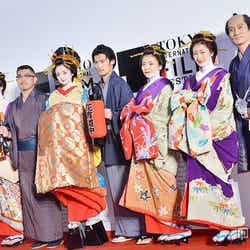 また、TIFFを広く紹介する“フェスティバル・ミューズ”を務める中谷美紀は個性的なデザインの黒のロングドレス、特別招待作品『花宵道中』(11月8日公開)で主演を務める安達祐実は劇中と同じく艶やかな花魁姿で魅了。同じく特別招待作品『救いたい』(11月22日公開)で主演を務める鈴木京香は和服姿だった。