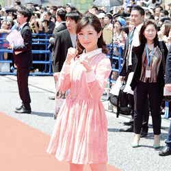 また、映画『任侠野郎』(公開未定)に出演するトリンドル玲奈はオーガンジーのホワイトドレスに身を包み登場。微笑みながら歩くトリンドルに、「可愛い~!」「トリちゃん!」と熱い声援が飛び交った。
