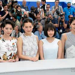 女優の綾瀬はるか、長澤まさみ、夏帆、広瀬すずが14日(現地時間)、フランスで行われた「第68回カンヌ国際映画祭」のコンペティション部門出品作に選出された映画「海街diary」(6月13日公開)公式上映前のレッドカーペットに登場した。