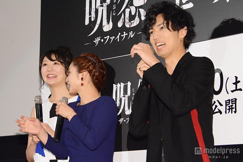 続けて「桐山さんのシーンを見学していたんですけど、玄関のポストから手が出てきて扉が開いてないのに伽椰子さんが…」と話し始めると、上映前ということもあり落合正幸監督から「あんまり喋っちゃダメだよ!」と注意される一幕も。平は慌てて口を閉ざすも「とにかく不思議現象ばっかり起きていて怖かったです」と茶目っ気たっぷりな笑顔で語った。