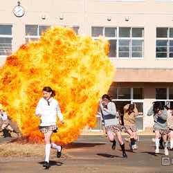 篠田がトリンドル玲奈、真野恵里菜の3人でトリプルヒロインを務める映画『リアル鬼ごっこ』(7月11日公開)の場面カットが解禁。同作で本格的なアクションに挑戦した篠田が、動きづらいウェディングドレスを身にまといながらキレッキレの動きを見せている。